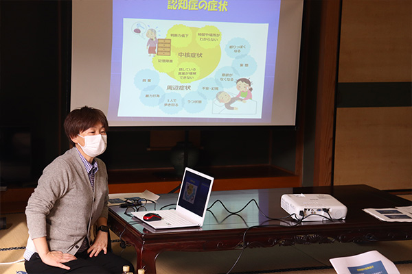 約15名の方が参加され、認知症の基礎から予防までのお話をさせていただきました。今回は、みなさんと一緒に脳トレを行う時間を多めにとり、楽しくお話をさせていただきました。